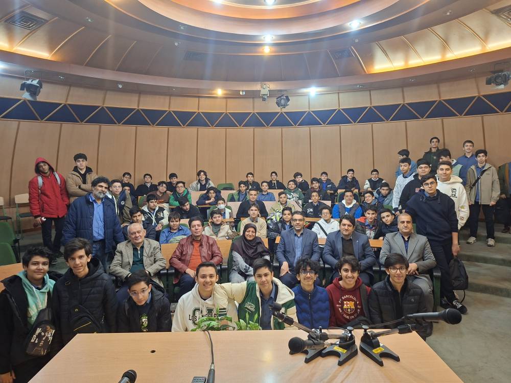 در جریان این مراسم، سرکار خانم دکتر حمیدی، معاون محترم پژوهشی و فناوری دانشگاه شهید بهشتی و دکتر حجاریان رییس محترم دانشکده علوم ریاضی، نیز حضور داشتند و ضمن گفتوگو با دانشآموزان، به پرسشهای آنان درباره مسیرهای علمی، پژوهشی و آینده تحصیلی پاسخ دادند. ایشان با تأکید بر اهمیت پژوهش در دوران دانشآموزی، دانشآموزان را به تقویت روحیه پرسشگری، خلاقیت و علاقهمندی به فعالیتهای علمی تشویق کردند.